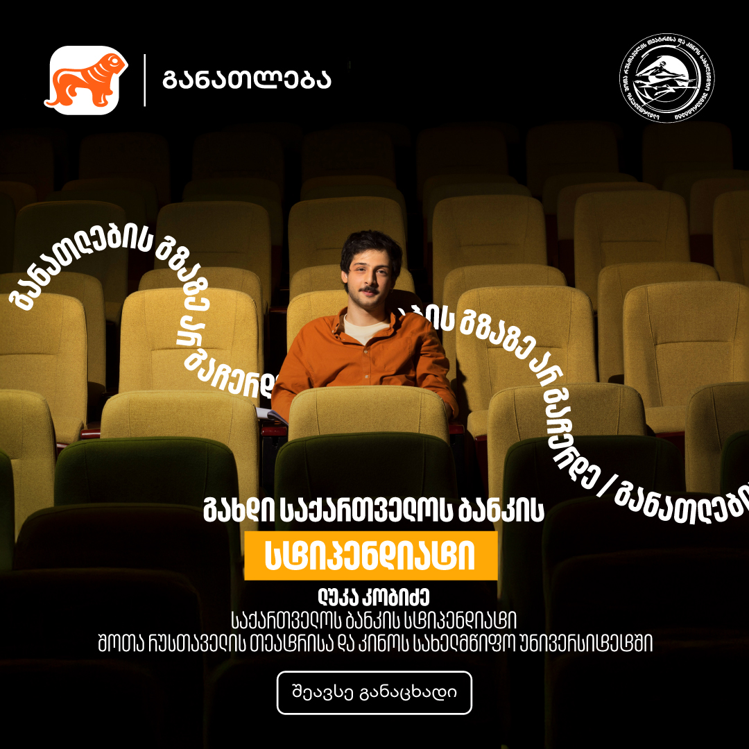 საქართველოს ბანკი თეატრისა და კინოს სახელმწიფო უნივერსიტეტის სტუდენტებს შესაძლებლობას აძლევს ჩაერთონ საქართველოს ბანკის სასტიპენდიო პროგრამაში და მოიპოვონ მიმდინარე სასწავლო წლის სწავლის დაფინანსება.