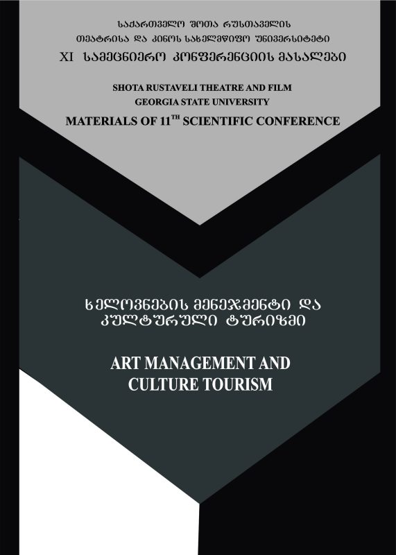 05 აგვ გამოცემები ხელოვნების მენეჯმენტი და კულტურული ტურიზმი (XI სამეცნიერო კონფერენციის მასალები, 2018). 2019 ივნისი 10, 2025 By TsoTne ქეთევან ახობაძე - ქართული კულტურის პოლიტიკის პრობლემატიკისათვის ნაი...ᲕᲠᲪᲚᲐᲓ