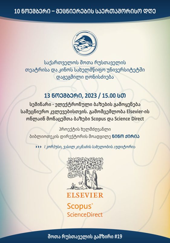 სემინარი თემაზე – ელექტრონული ბაზების გამოყენება სამეცნიერო კვლევებისთვის. სემინარი ეხება გამომცემლობა Elsevier-ის ონლაინ მონაცემთა ბაზებს Scopus-ს და Science Direct -ს.